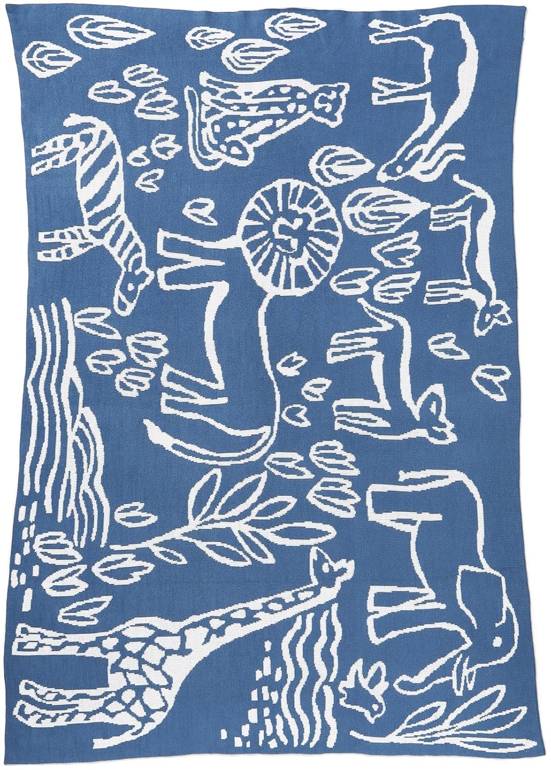 Dwellstudio geometric multi knit blanket, blue.
